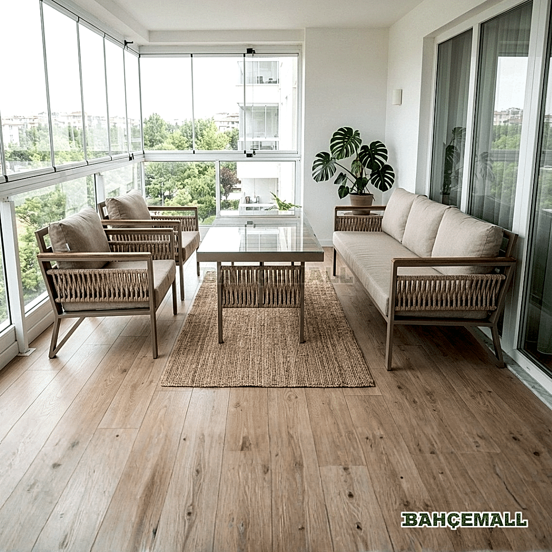 • Bu Nairobi Bahçe Mobilyası, bir adet Masa ve camı, iki adet Tekli ve bir adet Üçlü koltuktan oluşur.