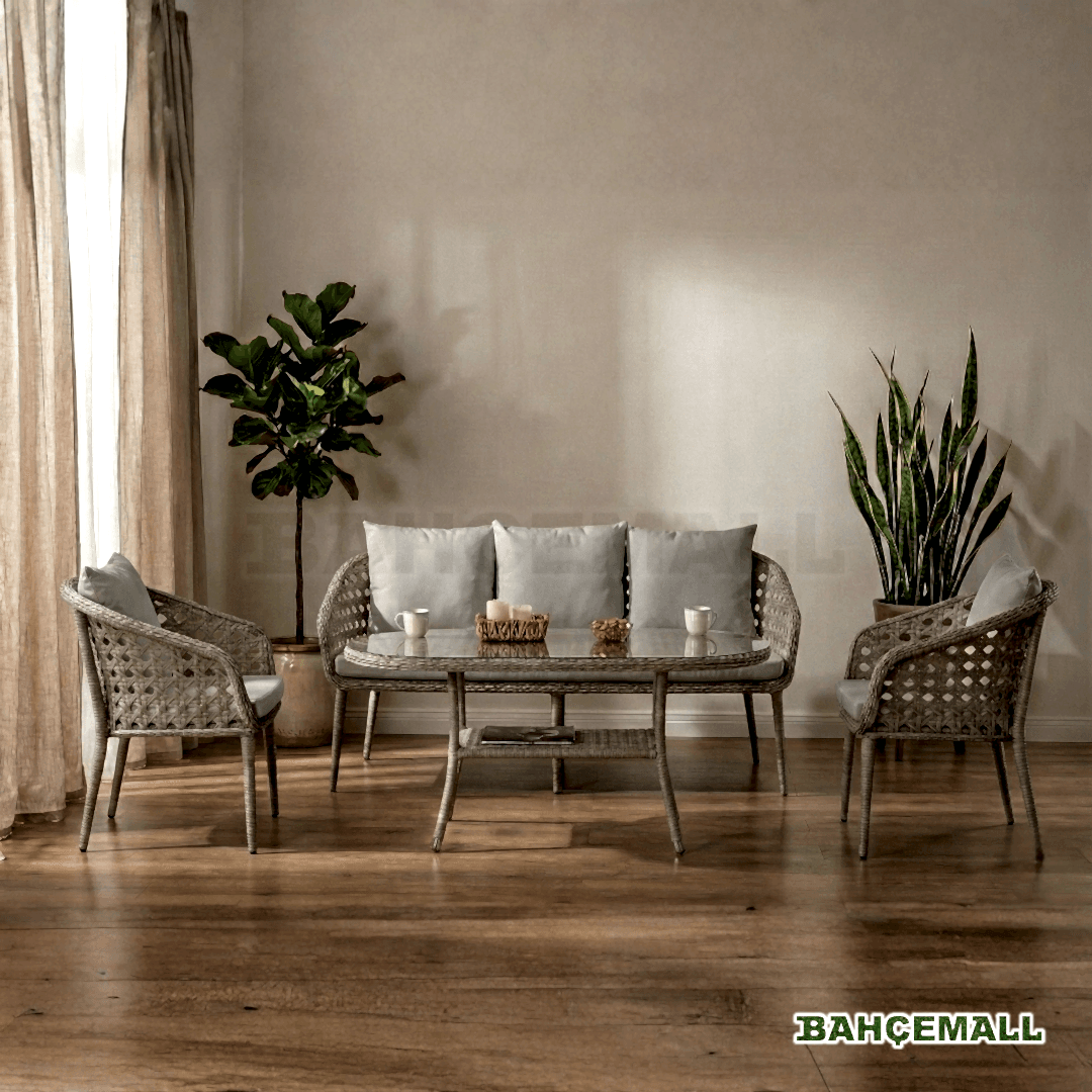 • Bu Goody Bahçe Mobilyası, bir adet Sehpa ve iki adet Tekli ve bir adet İkili koltuktan oluşur.