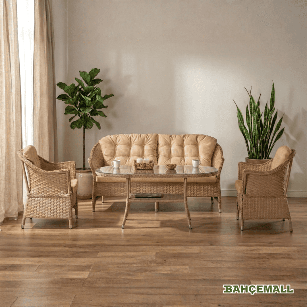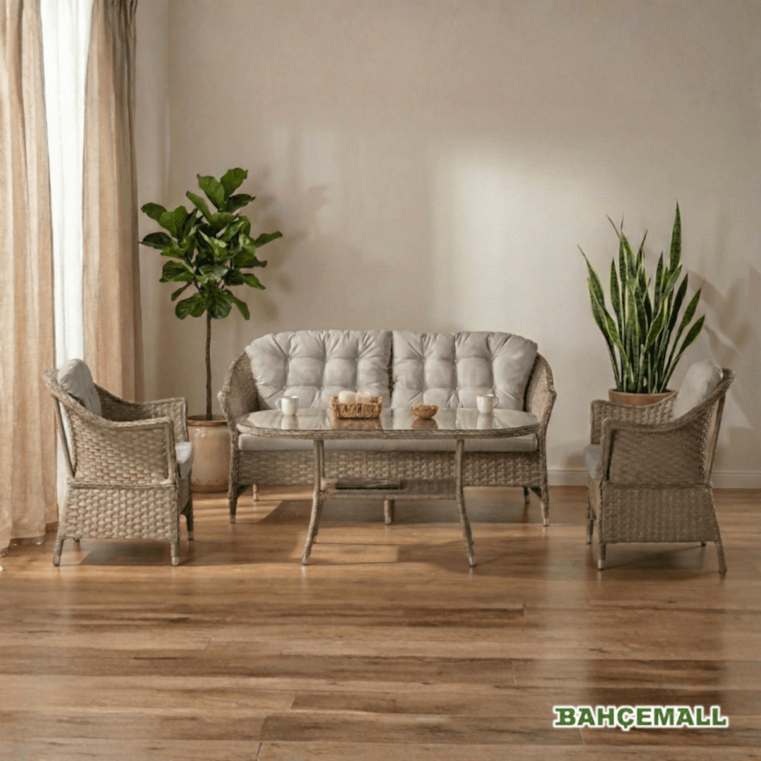 - Bu İdako Midi Bahçe Mobilyası, bir adet Sehpa ve iki adet Tekli ve bir adet Üçlü koltuktan oluşur.