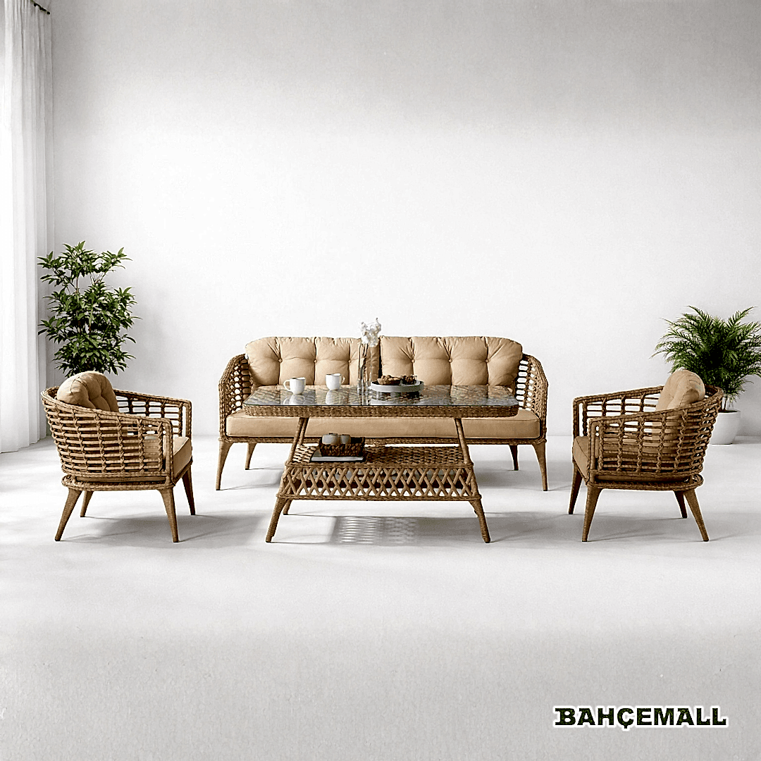 - Bu Efes Bahçe Mobilyası, bir adet Masa ve iki adet Tekli ve bir adet Üçlü koltuktan oluşur.