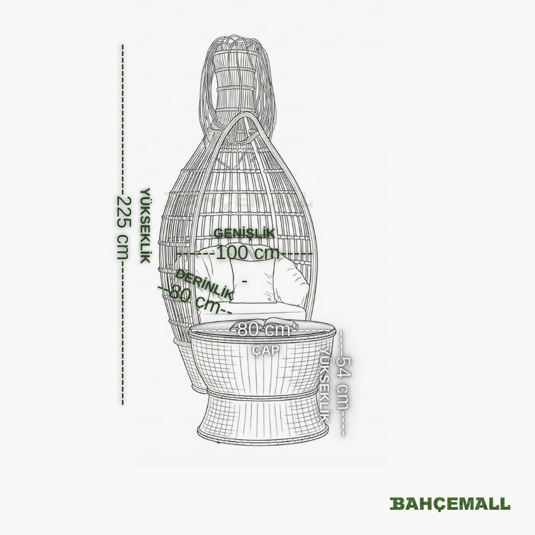 - Ürünün örgü bölümleri güneşe, suya ve UV ışınlarına karşı dayanıklıdır.